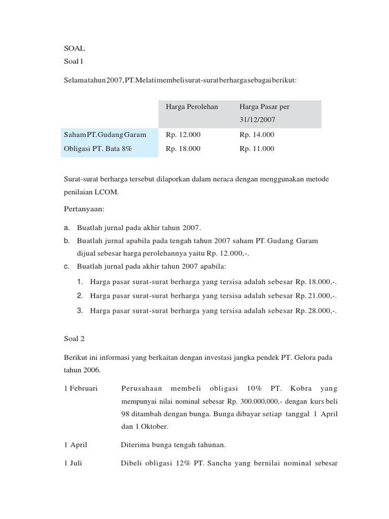 / Soal Tentang Surat Berharga - Kas Dan Surat Berharga / We hope you are enjoy and lastly can find the best picture from our collection that put up here and also use for ideal needs for personal use.